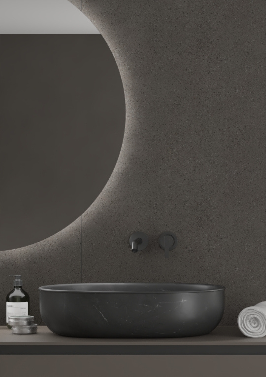 Cement-kolleksjonen samler betonginspirerte overflater som gir baderommet en arkitektonisk tyngde. Fra myke, pudrede nyanser til mørke, markerte strukturer – dette er vegger som gir rommet et tidløst og industrielt preg.