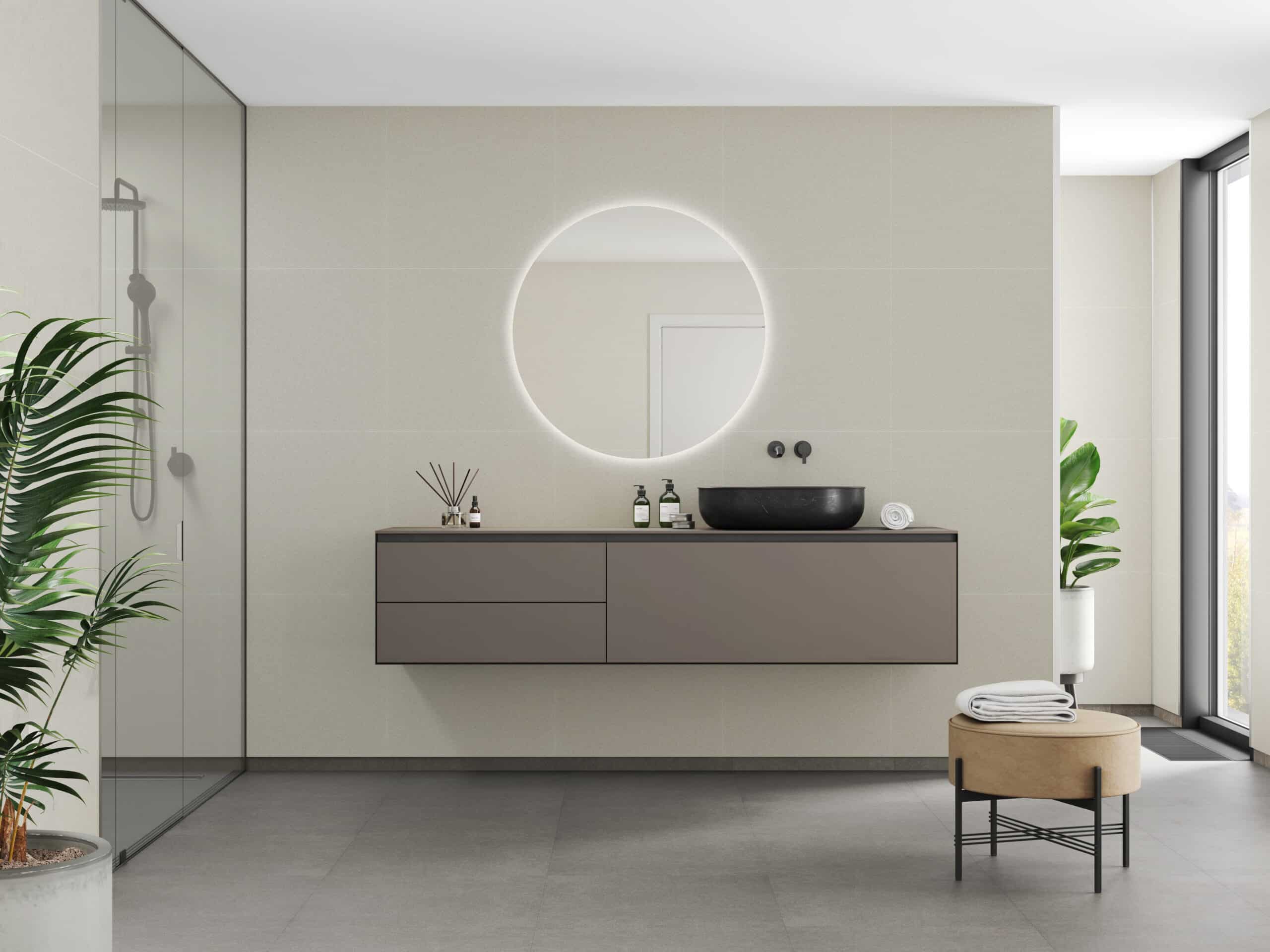 Salted Stone er et allsidig valg som passer like godt i moderne bad som i mer klassiske rom. Dekoren skaper et rent og balansert uttrykk, og fungerer spesielt godt sammen med naturmaterialer som tre, varme metaller og minimalistiske detaljer.