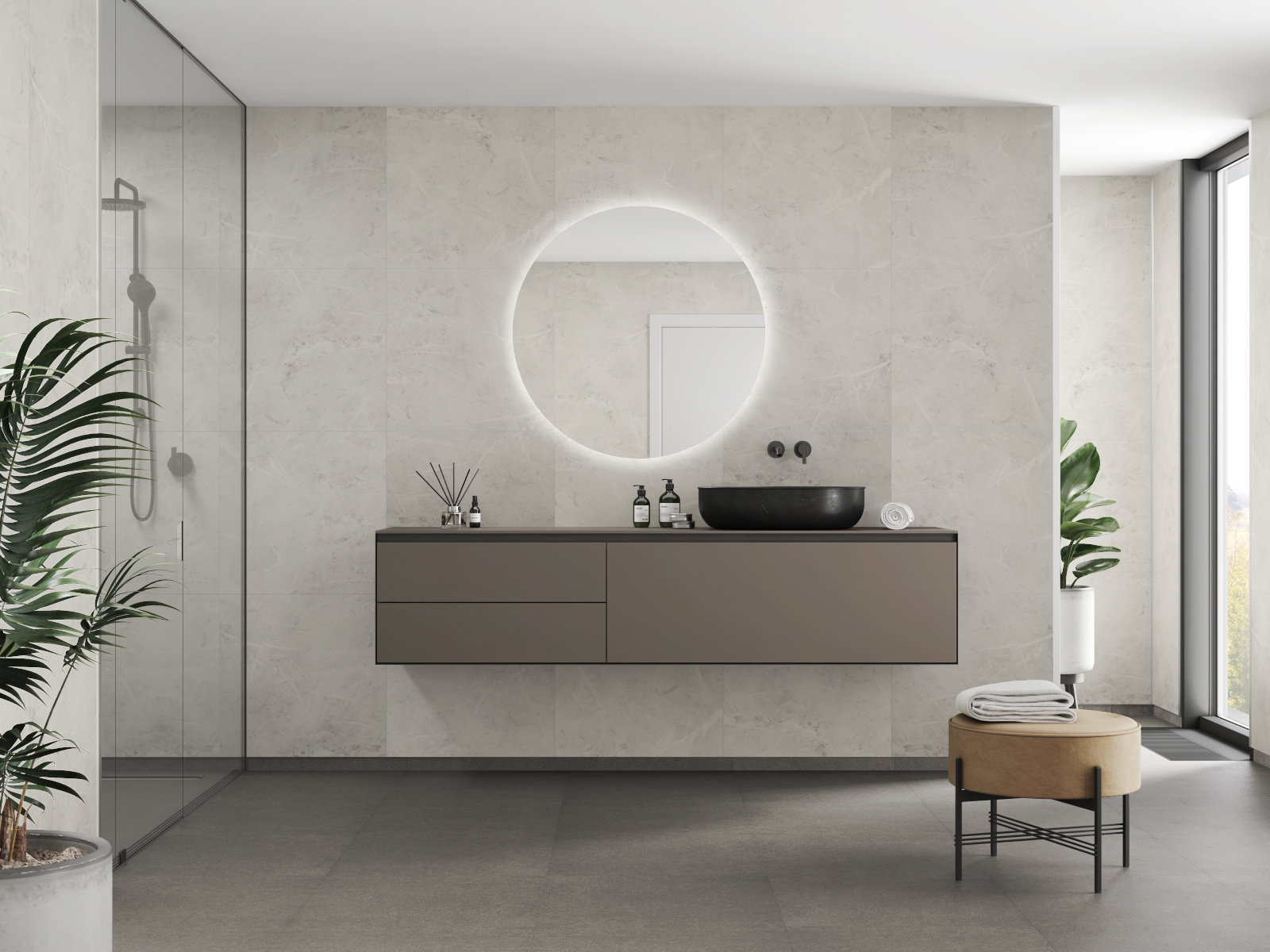 En dus marmor som gir en behagelig atmosfære i ethvert rom. Denne dekoren passer til både lyst og mørkt interiør, og på badet så vel som i andre rom! Mønsteret på et panel passer ikke nødvendigvis med neste plate så det kan være lurt å velge denne dekoren med fresemønster/design.
