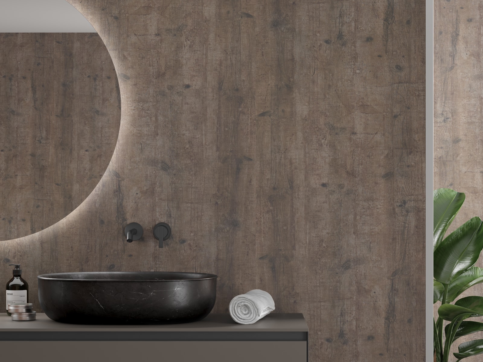 Årringer, nyansevariasjoner og subtile strukturer gir veggene liv. Samtidig skaper det en rolig bakgrunn som fungerer i både moderne og mer klassiske baderom.