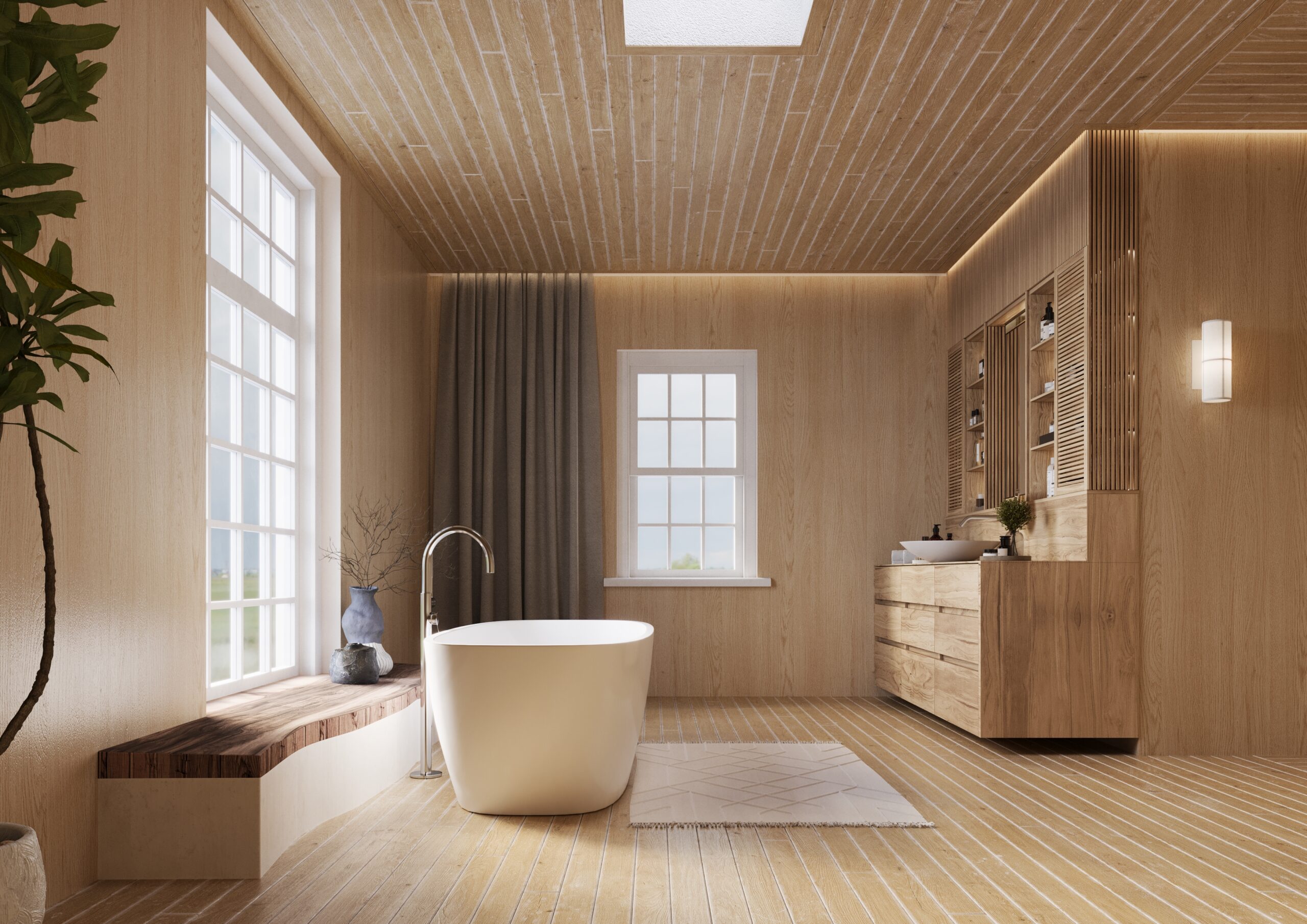 Det tilfører varme, struktur og en følelse av nærhet til naturen. På badet, hvor harde overflater ofte dominerer, skaper treinspirerte vegger en mykere og mer balansert atmosfære.